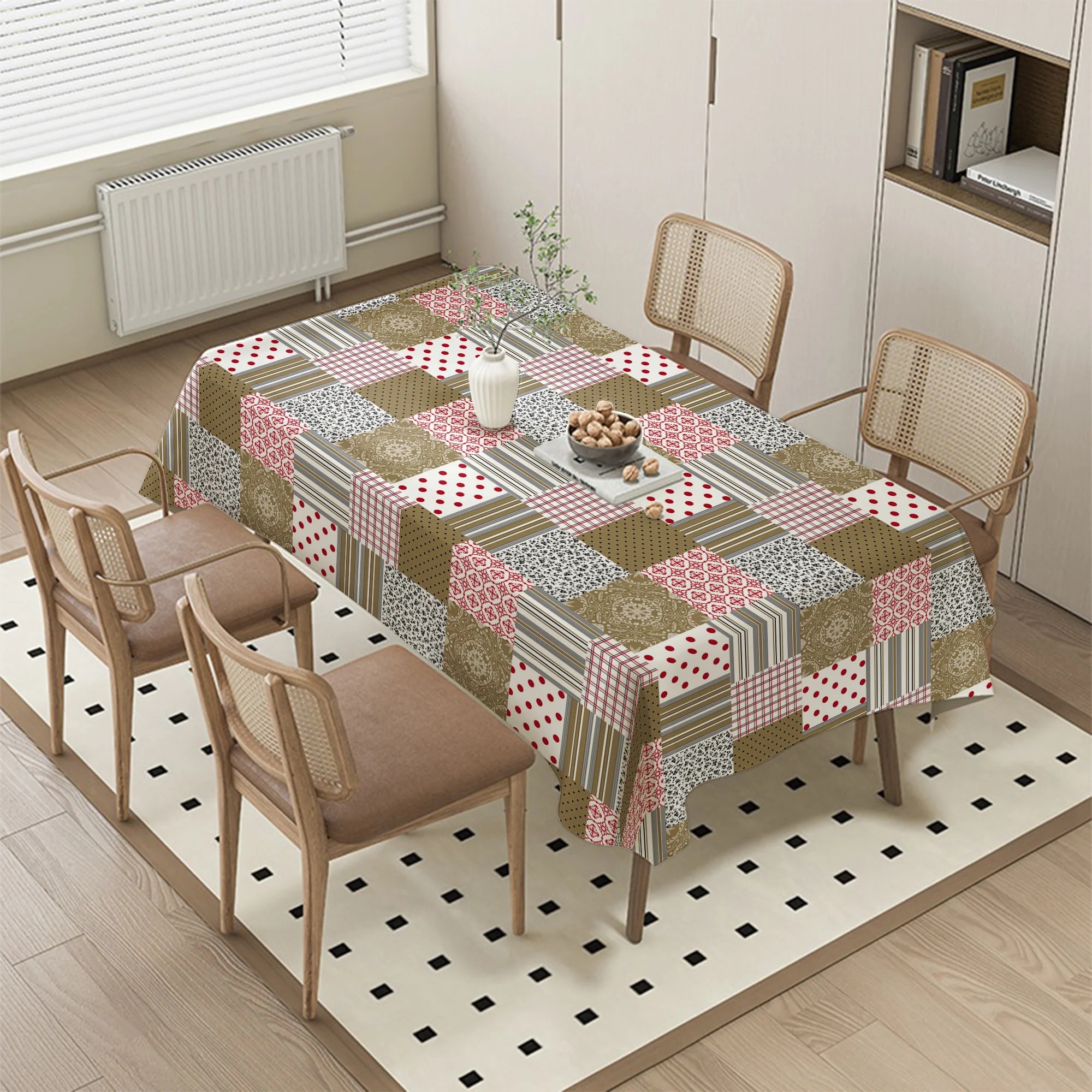A luxurious tablecloth is considered an ideal choice to beautify and enhance the dining area or event spaces inside and outside the home. It is characterized by its diverse and distinctive designs, adding a touch of elegance and luxury to any place. This tablecloth is made of two layers, a NONWOVEN layer and a PVC layer, using the finest global materials, making it exceptionally high-quality and durable. It is resistant to water and oils, maintaining its sophisticated appearance and facilitating the cleaning process.