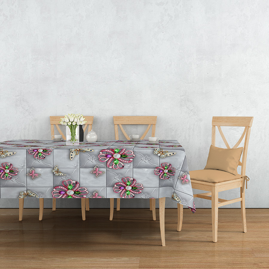 Une nappe luxueuse est considérée comme un choix idéal pour embellir et améliorer la zone de repas ou les événements à l'intérieur et à l'extérieur de la maison. Elle se distingue par ses designs variés et distinctifs, ajoutant une touche d'élégance et de luxe à tout espace. Cette nappe est fabriquée à partir d'une couche de PVC avec une impression des deux côtés, utilisant les meilleurs matériaux mondiaux, lui conférant une qualité exceptionnelle et une grande durabilité. Résistante à l'eau et aux huiles, elle conserve son apparence sophistiquée et facilite le processus de nettoyage.